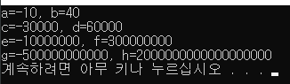 | long | 정수 | 8(64비트) | -922,337,203,685,477,508~922,337,203,685,477,507 |