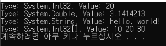 var d = new int[] { 10, 20, 30 };//배열도 var로 선언 가능